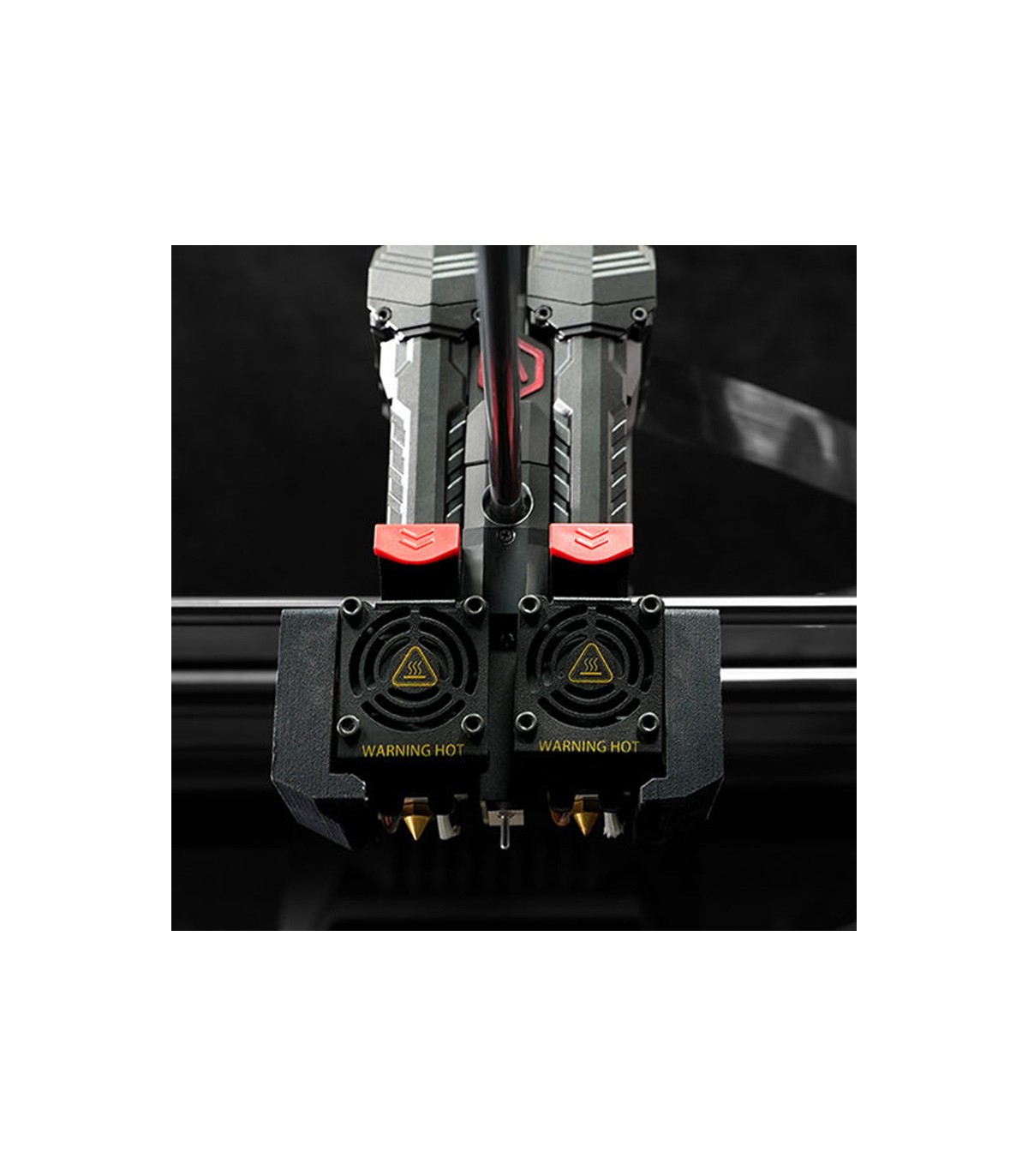 La impresora Raise3D Pro3 está equipada con una extrusora modular independiente y una estructura de doble extrusión. Esto permite que Raise3D Pro3 imprima con una variedad de filamentos, al tiempo que reduce la posibilidad de obstrucciones y permite un fácil desmontaje y reemplazo de componentes, lo que reduce el tiempo de inactividad de la máquina. El nuevo sistema hotend intercambiable es ideal para usuarios que a menudo necesitan cambiar de materiales normales/no abrasivos a materiales abrasivos que requieren diferentes tipos de boquillas, o para usuarios que desean imprimir a velocidades más altas y usar diferentes tamaños de boquillas. Están diseñados con un mecanismo de clic y bloqueo que no requiere herramientas y cada uno está identificado de forma única para rastrear y registrar el tiempo de uso de la boquilla.